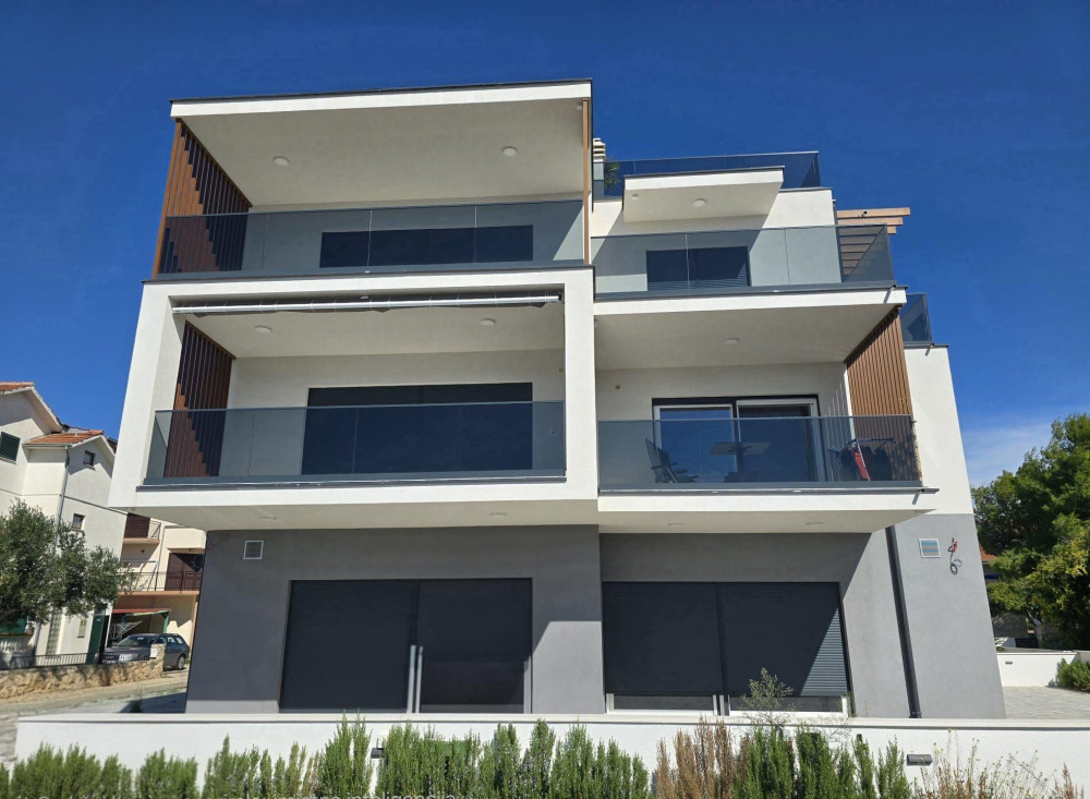 Prodaje se ekskluzivni poslovni prostor u novogradnji uz more u Srimi, površine 138,04 m², savršen za ured. Prostor se sastoji od uredske površine od 46,62 m², garderobe, hodnika, muških i ženskih WC-a te dodatnog WC-a, a tu su i terasa od 11,83 m² i dvorište od 9,12 m². U sklopu prostora nalazi se i jedno parkirno mjesto od 7,5 m².