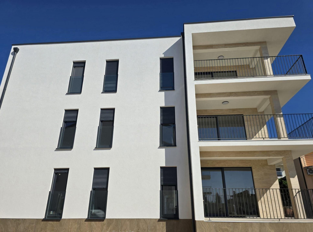 Na prodaju je prostrani stan na prvom katu moderne zgrade s tri etaže, površine 126 m². Stan se sastoji od tri spavaće sobe, dvije kupaonice i zasebnog gostinjskog WC-a. Otvoreni dnevni boravak nudi obilje prostora za kuhanje, blagovanje i opuštanje, s izravnim pristupom terasi. Terasa nudi više od samog vanjskog prostora – odavde se pruža prekrasan pogled na more.